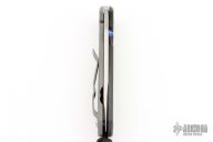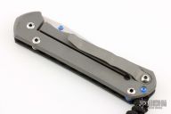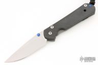 This Small Sebenza 21 by Chris Reeve Knives features a tumble finished drop point style blade with notched thumb rest and single anodized titanium thumb stud. The handle is comprised of a carbon fiber and bead blasted titanium frame with matching tip up clip over a single anodized barrel spacer and lanyard pin. Comes with original box, lube, tool, and cloth,  and papers dated July 20, 2016. This knife was a Knife Art Exclusive. Has a couple light scuffs, otherwise excellent condition.