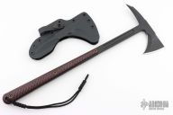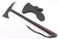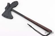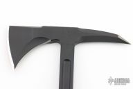 The Eagle Talon is the tomahawk that started it all. It was the first all-steel integral designed tomahawk and has been the keystone for all other RMJ tomahawks. It was inspired by 18th Century French and Indian War tomahawks that our designer, Ryan, had been emulating for many years. In the Spring of 2001, Ryan was commissioned by members of the USAF 820th Security Forces to design a tomahawk that featured 18th century lines and 21st century engineering; a tomahawk for modern combat use. Work began, and by the fall of 2001 the Eagle Talon Special Forces Tomahawk was being used in Afghanistan. Why a Tactical Tomahawk? The tomahawk has served as an effective field tool and weapon for over 300 years, and the physics behind the tomahawk design give it many advantages over a knife. The user can choke up on the grip to use the tomahawk like a more traditional knife, or when held in a normal grip, the cutting power and strike force is multiplied several times over due to the leverage created by the length of the handle. Great for: Breach | Utility | Emergency / Safety Tool | Preparedness Kit Specifications Overall Length: 7 in Overall Height: 18 in Forward Cutting Edge Length: 2.875 in Blade Thickness: .400 in Weight: 1 pound 15 ounces (without sheath) Blade Material: 80CRV2 Carbon Steel (HRC 57-58) Sheath: Molded kydex sheath and Low-Ride M.O.C. straps. Excellent condition.