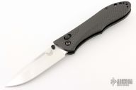 This Benchmade 730 Ares is an Allen Elishewitz design featuring a satin finished drop point blade with swedge and dual thumb studs. The handle is comprised of black G10 scales over steel liners. The black coated tip up clip is reversible for right or left hand carry. Lanyard hole in pommel. Includes original box and papers. Excellent condition.
