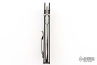 This 805S TSEK from Benchmade is features a tumbled drop point blade with swedge, notched thumb ramp and dual thumb studs. The handle is comprised of textured black G10 over steel liners and blue anodized barrel spacers. Black stainless steel tip up clip. Includes Benchmade box. Has some light scuffs, great condition otherwise.