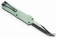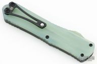 This Manticore-E by Heretic Knives features a two-tone black bowie blade. The handle has an black aluminum frame with a jade G-10 back cover, black stainless steel tip down clip. S/N 01133. Comes with lube. Excellent Condition.