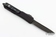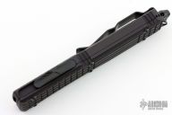 The Ultratech is a precision-made, out-the-front tactical knife. Has a fluted DLC standard tanto blade. Black frag pattern aluminum handle with black hardware, tip down stainless steel clip and nickel boron internals. Comes with original box ( a little beat up.). S/N#162 07/2020. Has a couple light scuffs, otherwise excellent condition.