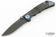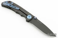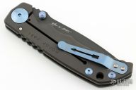 This Harsey framelock folder by Spartan Blades features a black drop point blade with dual thumbstuds and a notched thumbrest. The handle has a black PVD titanium frame with a laser engraving a tip up titanium clip and filler tab. Has nice detent, lockup, and blade seating. Excellent condition. Comes with original box.
