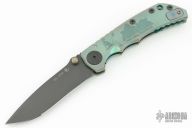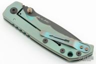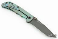 This Harsey framelock folder by Spartan Blades features a black drop point blade with dual thumbstuds and a notched thumbrest. The handle has an anodized titanium frame with a laser engraving.  Has nice detent, lockup, and blade seating. Comes with original box.  Excellent Condition.