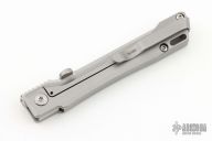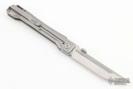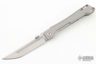 The Onna-Bugeisha (OB) Flipper version 1 is my take on a pocket friendly tactical folder that can be used in combat or camping.  Its complexity is in its simplicity.  It is sleek and simple, but with a complex 6 face grind with fuller.  It is a modern take on your soldier’s pocketknife.  It is a pleasure to hold and use.  The Blade is M390 high grade knife steel and the handles are smooth Titanium. Comes with original box. Has a couple light scuffs, excellent condition otherwise.