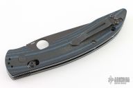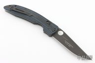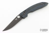 This 806BK TSEK from Benchmade is features a black drop point blade with swedge, notched thumb ramp and thumb hole. The handle is comprised of textured black/blue G10 over steel liners and blue anodized barrel spacers. Black stainless steel tip up clip. Includes original box and papers. Has some light scuffs on the clip and blade, excellent condition otherwise.