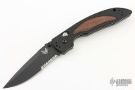 This 805S TSEK from Benchmade is features a black drop point blade with swedge, notched thumb ramp and dual thumb studs. The handle is comprised of textured black G10 over steel liners and barrel spacers. Black stainless steel tip up clip. Includes original box, drawstring pouch and papers. Has a couple light scratches, excellent condition otherwise.