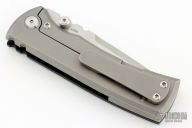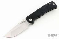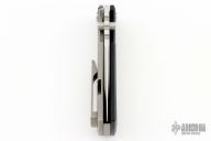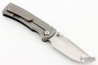 This Chaves Ultramar Redencion Drop Point features a satin finished blade with the Chaves logo, dual thumbstuds, and notched thumbrest. The handle is made up of a black G10 scale, tumbled titanium skull pocket clip (positioned for tip up carry), and a matching titanium backspacer. Has overtravel stop. Blade is centered when closed, and locks up with no play. Comes with box and additional clip. Excellent Condition.