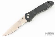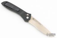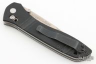 This 710 McHenry & Williams designed folder by Bencmade features a satin finished blade with swedge and dual thumb studs. The handle has black G10 scales over stainless steel liners and black polymer backspacer. Lanyard hole in pommel and black coated stainless steel tip down clip is reversible for right or left hand carry. Has some light scuffs, excellent condition otherwise.