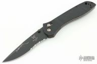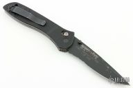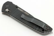 This 710 McHenry & Williams designed folder by Bencmade features a black blade with swedge and dual thumb studs. The handle is comprised of black G10 scales over stainless steel liners and black polymer backspacer. Lanyard hole in pommel and black coated stainless steel tip down clip is reversible for right or left hand carry. Has scuffs and scratches throughout. Good user condition.