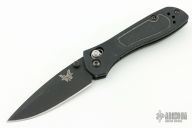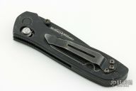 This 707 from Benchmade features a black spear point blade with dual thumbstuds and a false top edge. The handle has anodized aluminum scales and black G-10 inserts, stainless steel liners, and a black backspacer. Tip up reversible stainless steel clip. Has scuffs and scratches, great user condition otherwise.