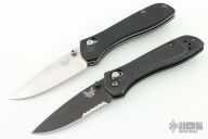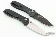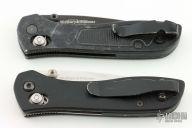 This 707 from Benchmade features a satin finished spear point blade with dual thumbstuds and a false top edge. The handle has anodized aluminum scales and black G-10 inserts, stainless steel liners, and a black backspacer. Tip up reversible stainless steel clip.
