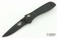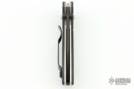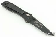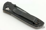 This 707 from Benchmade features a satin finished spear point blade with dual thumbstuds and a false top edge. The handle has anodized aluminum scales and black G-10 inserts, stainless steel liners, and a black backspacer. Tip up reversible stainless steel clip. Has a couple light scuffs, excellent condition otherwise.