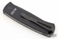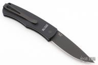 This BR-1.7 by Protech Knives features a black blade, false top edge. The handle has an aluminum frame with aluminum bolster release, stainless backspacer and tip up black stainless clip. Lanyard hole at the butt. PR3 #550. Has a couple light scuffs, otherwise excellent condition.