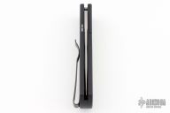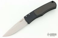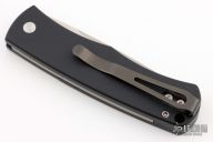 This Magic BR-1.22 Bolster Release Automatic from Pro-Tech Knives features a drop point black 154-CM blade with swedge. The handle is comprised of a black aluminum frame with checkered bolster and carbon fiber inlay on the "A" side of the handle. Black coated stainless steel clip is positioned for tip up carry. Lanyard hole in the pommel. PR7 #258.  Has a couple light scuffs, great condition otherwise.