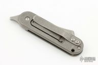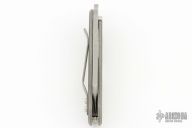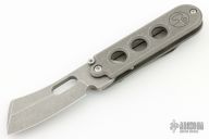 This Bean Cleaver folder by Serge Panchenko features a stonewashed cleaver style blade with front flipper/friction bar and thumb hole. The handle is stonewashed titanium with a tip up clip. Has a detent to hold the blade in position open/closed, but it does not lock. Comes with original box. Excellent condition.