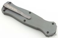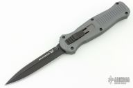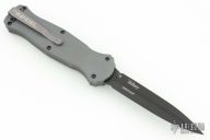 "Introducing an OTF like none-other.. The new Infidel® is rapidly making believers out of many a skeptic. Built for strength and reliability the patent pending double-action mechanics get it done over the long haul. Grab on and you will find the handle grip rock-solid with its patented machined in Presidio® style bi-directional tread pattern, and overall generous sizing for gloved hands. Intuitively pressure the release-slide forward and its spear-point edged steel fires and locks up with a unique three-point retention system with amazingly negligible blade play. Reverse the process and the blade retracts in a rapid blur of motion. The Benchmade Infidel is a special operator’s fantasy come true." Comes with a Benchmade box. Has a couple light scuffs, otherwise excellent condition.
