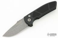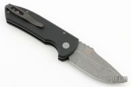 The Short Bladed Rockeye, or SBR for short, is a compact version of the outstanding full sized Rockeye Auto. Both knives are designed by Marine Corps knife designer Les George, who’s ergonomic hard use knives have been faithfully translated to automatic versions by Pro-Tech. The SBR features a compact design, with a 2.5″ blade that’s built for a multitude of cutting tasks. A pocket milled spine adds extra grip and depth to the design. The SBR features a solid black aluminum handle, blasted hardware, black DLC coated deep carry clip, and an acid washed blade. Comes with original box and papers. Excellent condition.