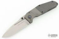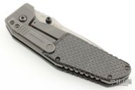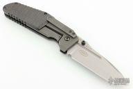 This MLK D/A by Benchmade is a Shane Sibert design, it features a tumble finished blade with dual thumbstuds, and a notched thumbrest. The handle has a bead blasted titanium frame with LSCF scales, a black stainless steel liner, and black barrel spacers. #524 on blade. Scales are aftermarket, pretty well done. Has some light scuffs and scratches, great condition otherwise.