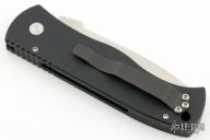 This CQC7 A Side Opening Auto has a black finished 154-CM drop/ spear point blade with swedge and notched thumb rest. Handle is black aluminum with lanyard hole and black stainless steel tip up clip. Comes with nylon velcro sheath and original box and papers. Excellent condition. PR5 #41