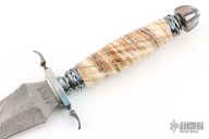 "I have always had a great interest in knives, even when I was a young boy growing up in Wisconsin. My dad gave me a knife that my grandfather made. I never got to meet my grandfather so that knife is very special to me. I first got started making knives in 1988 when a co-worker gave me a piece of tool steel from a saw to work. My brother told me that the knife that I made out of it looked like something made in a prison. I enjoy knifemaking because you are starting out with a chunk of steel and a chunk of ivory, and you hopefully end up with something of beauty. These are a few of the many makers that have inspired me: Buster Warenski, D'Holder, Dennis Freidly, Tim Hancock, and Don Norris. I prefer using Damascus steel because of the wide variety of beautiful patterns available. I like using natural materials for handles such as fossil Walrus, Mammoth ivory, and Mammoth teeth."