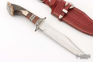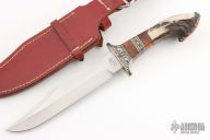Engraved Crown Stag Bowie w/ Gold Nugget Inlays