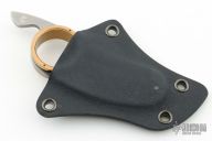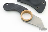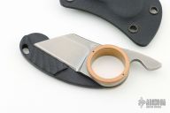 This Folding La Griffe by Fred Perrin and Max Knivesfeatures a chisel ground wharngriffe blade with friction folder style opening. The handle has an anodized titanium ring with black G-10 handle. Comes with kydex neck sheath and a zippered case. New from maker. First Run Limited Edition 585/700.