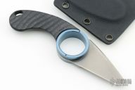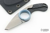 This Folding La Griffe by Fred Perrin and Max Knives features a chisel ground tanto blade with friction folder style opening. The handle has a anodized titanium ring with black G-10 handle. Comes with kydex neck sheath and a zippered case. New from maker. First Run Limited Edition 226/700.