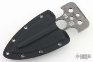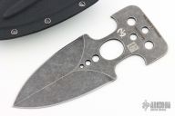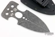 This Prototype Devil's Tongue by Max Knives is a Laci Szabo Design. It features a double edged black tumbled blade with .109" blade stock and 2.562" blade depth, full tang construction. Comes with a kydex sheath and original box. New from maker.