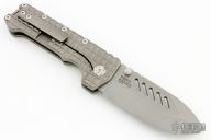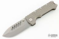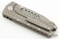 The PMP Kodiak, a true beast among folding knives. Its robust design features a beefy 4-inch M390 blade, measuring a substantial 0.196 inches thick, ensuring exceptional strength and durability. With a titanium frame lock mechanism and a weight of 9.98 ounces, this formidable tool is truly impressive in hand and sure to be a point of pride in any collection. Comes with original box and papers. Excellent condition.