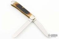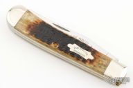 This Trapper by Case features 2 polished blades with nail nicks. The handle has nickel silver bolsters, jigged bone covers, with a Case shield, brass liners and stainless springs. Excellent condition.