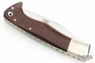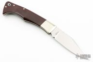 This Slipjoint by D'Alton Holder features a mirror polished blade with nail nick and fileworked spine. The handle has nickel silver bolsters and liners, maroon linen micarta scales and a fileworked stainless steel backspacer. Comes with a zippered case. Has a couple light scratches, otherwise excellent condition.