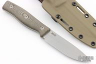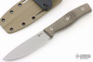 This GSO 4.5 from Survive Knives features a stonewashed drop point blade, .117" blade stock and 1.139" blade depth, full tang construction. The handle green linen micarta scales. Includes kydex sheath. Excellent condition.