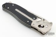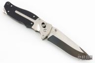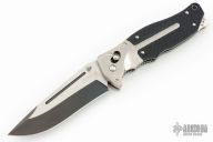 The Fatcat is the largest and most massive folder SOG® Specialty Knives has ever produced. Not intended for the main stream, it is designed with heavy work in mind. For its size, it is amazingly light and quick to open. The machined Titanium frame attributes to the lightness while the textured Zytel® handle scales insure good grip in extreme conditions. The weight is amazing for such a massive knife. If you like big, you will like the Fatcat. The 4-1/2" blade is VG-10 stainless steel at 59-60 Rc., with a never before seen dual tone TiNi coated blade. The bevel, blood groove (fuller) and the back of the blade are black TiNi coated, while the rest of the blade has a nice satin finish. Locks with SOG's own patented ARC-Lock™. Excellent condition. Still has plastic covers on bolsters.