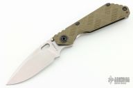 This MSC SNG framelock folder by Mick Strider features a stonewashed blade and a Crosshatch Ranger Green G-10 and stonewashed titanium frame and tip up titanium clip. Includes Hinderer "Lock Bar Stabilizer" for maximum reverse lock retention. Nice detent, lockup and blade seating. New from maker at the 2024 CCKS.