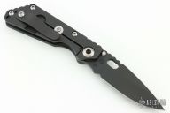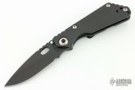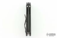 This JVA by Mick Strider is larger than a PT, but smaller than an SNG. It features a black DLC blade with notched thumbrest and thumbhole. The handle has a black DLC titanium frame with matching tip up clip. New from maker at the 2024 CCKS.
