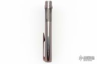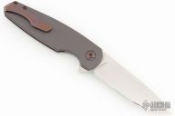 This Morpheus by Holt Bladeworks features a polished stonewash finished blade with a notched thumbrest and flipper tab. The handle features a checkered milled titanium frame with anodized finish tip up pocket clip and hardware. Nice detent, lock up and blade seating. Includes the original zipper case and papers. Excellent condition.