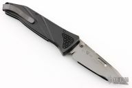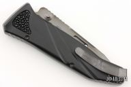 This CHI by Rockstead features a DLC mirror polished tanto blade with a notched thumbrest and dual thumbstuds. The handle is black aluminum with rayskin inlay, tip up black stainless steel clip and a single stainless steel liner. Comes with original box and papers. S/N 538. Has a couple light scuffs, excellent condition otherwise.