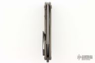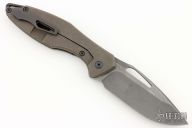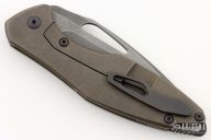 This Arius Non-Flipper by Koenig knives features a "standard stonewash" with PF blade with thumbhole. The handle has a "darkwash" finished titanium frame, titanium backspacer and a bead blasted tip up clip with hidden screws. Has ceramic bearings and a ceramic detent ball. Nice detent, lockup and blade seating. Comes with original box and COA dated September 5, 2017. Has some scuffs and oxidation on the blade. Great condition otherwise.