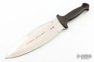 This Combat Smatchet from Al Mar Knives features a double edged satin finished blade, .178" blade stock and 2.900" blade depth, full tang construction. The handle has black composite scales over full tang construction. Signed "Rex Applegate W.Z. Fairbairn". Excellent condition.