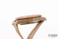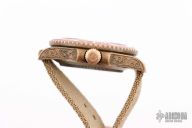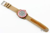 This Custom Seiko watch was made with Seiko parts. Has an engraved bronze case, faded red bezel, matte black dial, canvas strap. Water Resistant 1000ft=300m. Automatic. Has some scratches, otherwise good condition.