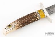 Stag and Damascus Dagger - Carved Eagle's Head