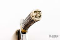 Home Products Stag and Damascus Fighter - Carved Skull