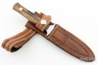 Weldon Whitley began making knives for the public in 1965. At that time he was in Odessa, Texas and recently married to his wife Doris. Shortly after their marriage he went to work in the natural gas industry and remained there for the next 36 years. His occupation during that time was that of a machinist during which time he applied many of the skills learned there to the trade of knife making. During his tenure with the gas industry he lived at Jal, New Mexico, El Paso, Texas and took early retirement in Odessa, Texas. He has knives bearing all of these locations through the years. All of his knives showing the Odessa mark are representative of when he started knives as a full time occupation. He has made a series of knives for the 40th and 50th anniversary of the New Mexico State Police as well as a limited edition for the Shriners in Illinois in honor of the Crippled Children's Hospital's 60th year of operation. Weldon has also worked in the mediums of bronze and leather. On his knives, he now does his own embellishments to include engraving, scrimshaw, and file work in an effort to be the sole artist on his work. Weldon has made many knifemaking instructional DVDs.