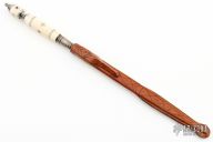 This dagger features a mirror polished blade with fullers and a hidden tang construction.  .101" Blade Stock.  .387" Blade Depth.  Mammoth ivory grip with silver inlays.  Includes a brown leather sheath.  The is a crack in the handle otherwise the knife is in good condition.