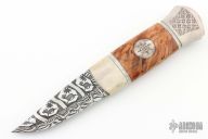 My name is Pär-Olof Eklund, and I live in Skellefteå, a city in the north of Sweden. My first knife was made in the beginning of 1980. Beside the blades, which I buy from the most skillful smiths in this part of Sweden, I do all the work with the knives on my own. During the dark winter months I make the sheaths and the handles, sew the leather and engrave when the knives have got their final design. I use traditional Nordic materials, antler from reindeer and moose, curly grained root from birch and sallow, and leather from reindeer and cattle. The engraving is traditionally carved with knife, and colored with bark from alder-trees or oil color. I am a member of The Swedish, Norwegian and Danish Knife Associations aswell as The Knifeguild of Skellefteå and Grundsunda.