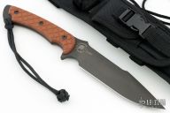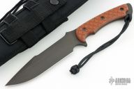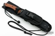 "Horkos - Horkos, is a sacred oath and the demon protector of honor / oaths in Greek language and myth. This knife was commissioned by the Combat Weapons Team of the United States Military Academy (West Point, NY), with custom etching to honor the graduating class. As all academy graduates are defenders of our freedom and take a sacred oath to the US constitution, we think the name fits! This blade is designed to be a great all around combat / utility knife." This Horkos features an S35VN blade with black coating (SpartaCoat - PVD - DLC) and a brown canvas micarta handle. Comes with nylon belt sheath. Has a couple light scuffs, otherwise excellent condition.
