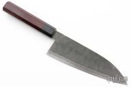 The third-generation master blacksmith Shosui Takeda was born and raised in Niimi, Okayama in Japan. After graduating from a university and working in Tokyo, he returned to his hometown to succeed his father as a blacksmith. Since 1985 he has strived and studied to produce the very best hand-forged blades and tools. His knives are forged by hand with his small staff of master smiths. Each blade holds its edge extraordinarily well and resharpens easily. All his knives have 50/50 edges and octagonal handles so they are good for either right-handed or left-handed users. His good old-fashioned hard work makes for one-of-a-kind knives.