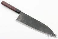 The Gyuto by Takeda is traditionally used for cutting a head of cabbage or slicing meat. The blade is stainless clad Aogami Super Steel (NAS) which is a high-carbon steel alloy with vanadium, .124" blade stock and 2.617" blade depth, hidden tang construction. As with all of Takeda's knives, it has a strong sharp edge. The octagon shaped wood handle is easy to hold. 250mm cutting edge. Comes with original box. New from maker!