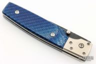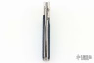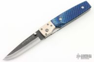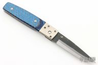 This Inagaki Linerlock Folder features a Stainless clad Aogami Super Steel (NAS) blade which is a high-carbon steel alloy with vanadium and is ground on both sides. The handle has nickel silver bolsters, blue twill scales with polished stainless steel liners. New from maker. Comes with original box.